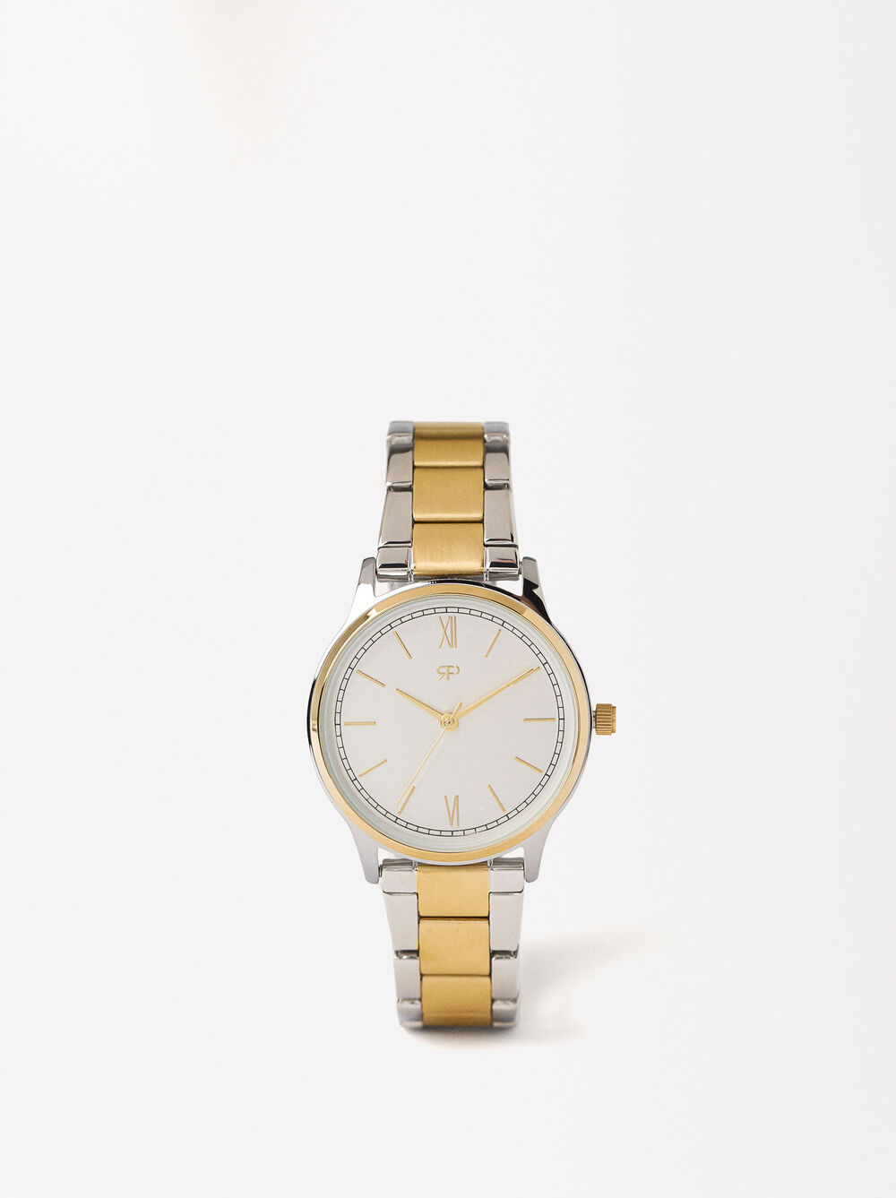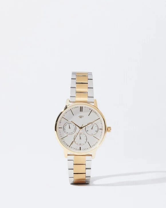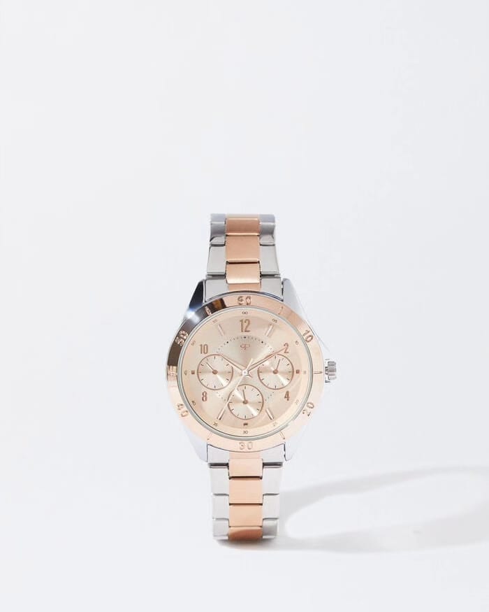 Relógio bracelete de malha metálica aço bicolor